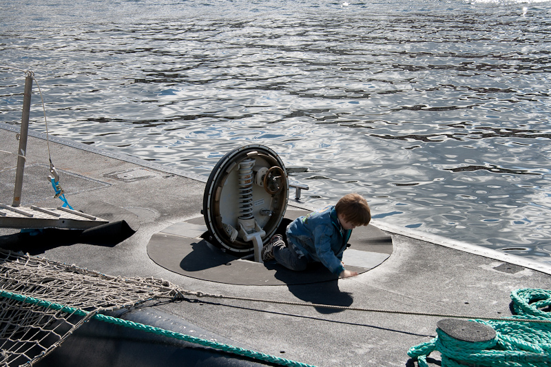 Odma iskusno stajemo na red ispred podmornice i bivamo prvi u istom. A ja se od malena pržim na podmornice ko na svet kompjutera, proveo lepo juče popodne gdedajući na netu neke interesantne fotke podmornica iznutra, isplanirao kako ću da se slikam sa periskopom, kako da se slikam za sonarom, celu filmsku knjigu sam spremio. Kaže vodič na ulazu, aparate i telefone ostavte ovde u kutiju, vratićemo vam kad izadjete. Al reko kako da slikam brate onda? Kaže pa nema slikanja unutra. E reko nanče ti ga baš da ti ga baš. Kaže ne razumem, možeš da ponoviš na engleskom? Pa nema taj izraz na enlgleskom a reko bi ti odma. Polako dolazimo do šahta gde se ulazi u podmornicu, i pokazuje mi lik kako se ulazi u podmornicu. Jes reko ti će mi kaeš, ja nisam u životu ušao u podmornicu pa ne znam. Al on ne zna da ja ustvari nisam ušao nikad. U podmornici ko u svakoj podmornici, malo, skučeno, periskopom sam gledao šta se nosi na vrh Ulrikena od 642m, pritiskao dugmad koju me pustili, torpeda kažu ne može da diraš. Kaže svuda u vojsci je veoma velika disciplina, al kao u podmornici je disciplina opuštenija pošto su svi tu po ceo dan u istoj prostoriji. Jes reko, ti će mi kaeš, ja nisam služio vojsku 2011 pa ne znam šta je vojnička disciplina. A jel kaže, koji si rod bio? Reko kurirska služba u post-expresu brale, kad mi dodje 150 adresnica iz intese, ja po 2 sata sedim i pišem adrese, ruka mi utrne, tri puta mi one žene donose šećer i vodu da se ne onesvestim. A pod „opuštenijom disciplinom“ misli se garant na stavove mirno