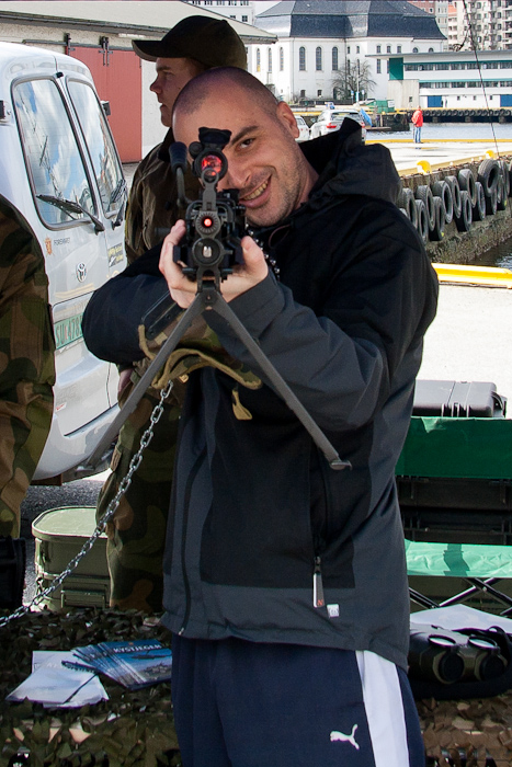 Kaže brodovi su toliko nevidljivi da kad izadju u grad uveče, jedva ih nadju posle gde su parkirali. Inače to su prvi brodovi na svetu valjda koji ne koriste papirne mape već full elektronski, i kažu da mogu da plove na dubinu vode od 1m pošto nekako lebde na vazduhu. Reko brate, šta li vi pijete kad izadjete u grad ne znam ali da vam je dosadno nije. A u kokpitu enterprajza skoro kao u kokpitu ovog broda. Ja naravno najgrlatiji odma pitao vodiča da sednem u kokpit i klikćem dugmad jer sam profesionalno deformisan, kaže momak nije problem samo ako nešto pritisneš i vidiš da se mrdamo – zovi. I čim sam uključio radio i neki likovi počeli nešto da pričaju na razglas on dotrčao i izvinio mi se što je za nas istekao termin posete. Idemo dalje do nekih momaka sa nekim oružjima.